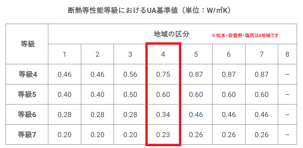 ちなみに、当社マルセイ住宅は地域に関係なくUA値0.39以下を高断熱と定義しています。
